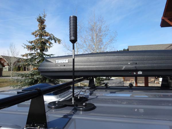 We opted to get creative. We ordered the Tram 269 Triple Magnet Mount and modified it to attach to the 24 inch WeBoost antenna. (FYI there is a shorter 19″ spring mounted antenna available on Amazon). The Tram 269 just barely fit over the ridges in the roof of the Sprinter Van. Once securely on the roof, the magnet mount is solid. There was no movement going 80 MPH on I-90 in crosswinds for multiple hours. Take note at how high the antenna sits though and be aware of overhanging branches, late night drive throughs, and other low hanging hazards. One of our concerns is the long term durability of the antenna – especially if it gets dinged by something.